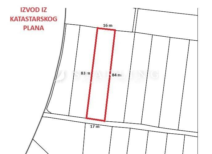 Širina zemljišta uz cestu je 17 m, a duljina zemljišta je 83 m.