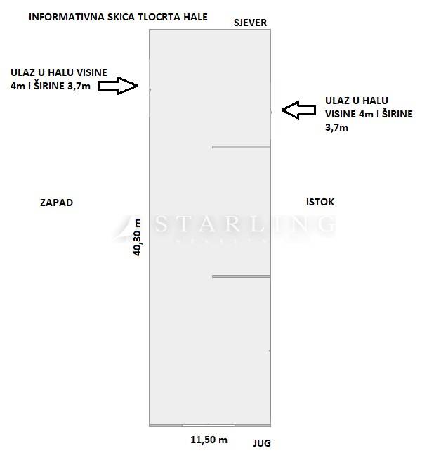 Pristup kamionima i šleperima s glavne ulice. Ulaz u halu visine je 4 m i širine 3,7 m.