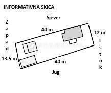 Na zemljištu se nalazi kuća s pomoćnim građevinama.