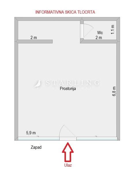 Prostor se sastoji od jedne open-space prostorije i wc-a.