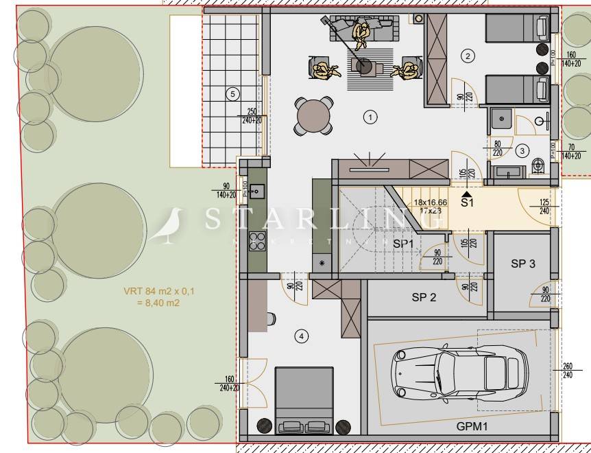 A special asset is the 84 m² garden, ideal for relaxation and privacy. The quality of construction stands out with triple-glazed PVC joinery and electric shutters.