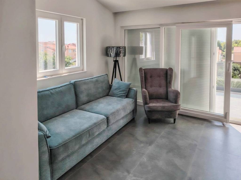 Luxuriously furnished apartment 85m2 in a residential building in Vodice. The apartment is located in a quiet part of town, close to all necessary facilities and only 350 meters from the beach.