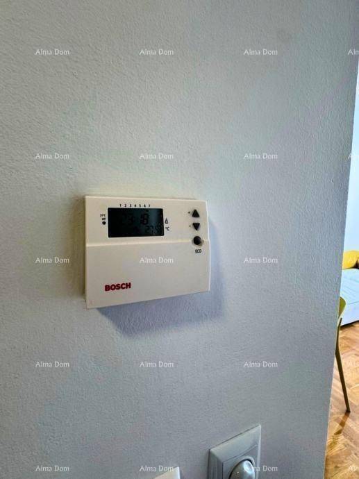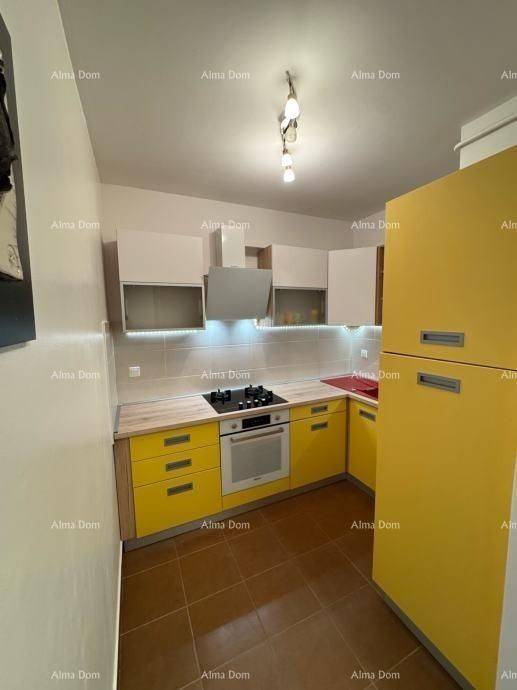 For sale: an apartment in Pula, located on the 4th floor of a building without an elevator. The apartment has a southern orientation, overlooking a children"s playground, making it exceptionally bright and pleasant to live in.Apartment area: 42.17 m² (net)Garage: 8.10 m² net (actually 11.5 m²) – registered separatelyStorage in the basement includedRoom layout:- Entrance hallway- Kitchen- Dining area and living room (open space)- Bedroom- Bathroom- Balcony- Storage in the basement- Garage parking spaceEquipment and advantages:- The apartment is sold fully furnished and move-in ready- New kitchen (2022) with new appliances (except for the dishwasher)- Dining table and chairs purchased in 2024, TV cabinet from 2025 (unused)- Gas central heating + gas for cooking- Air conditioning unit (3.5 kW)- Facade with stone wool – excellent thermal insulation- Low utility costs- Flooring: parquet (bedroom and living room), ceramics (kitchen, hallway, bathroom)- Anti-burglary door.Well-structured ownership of the apartment and garage. Usage permit available.Located on a quiet street, close to all essential amenities – shops, schools, public transport, and the center of Pula. Ideal for living or as an investment.For more information, please contact:+385 91 611 57 06 +385 98 420 885 azra@almadominvest.com