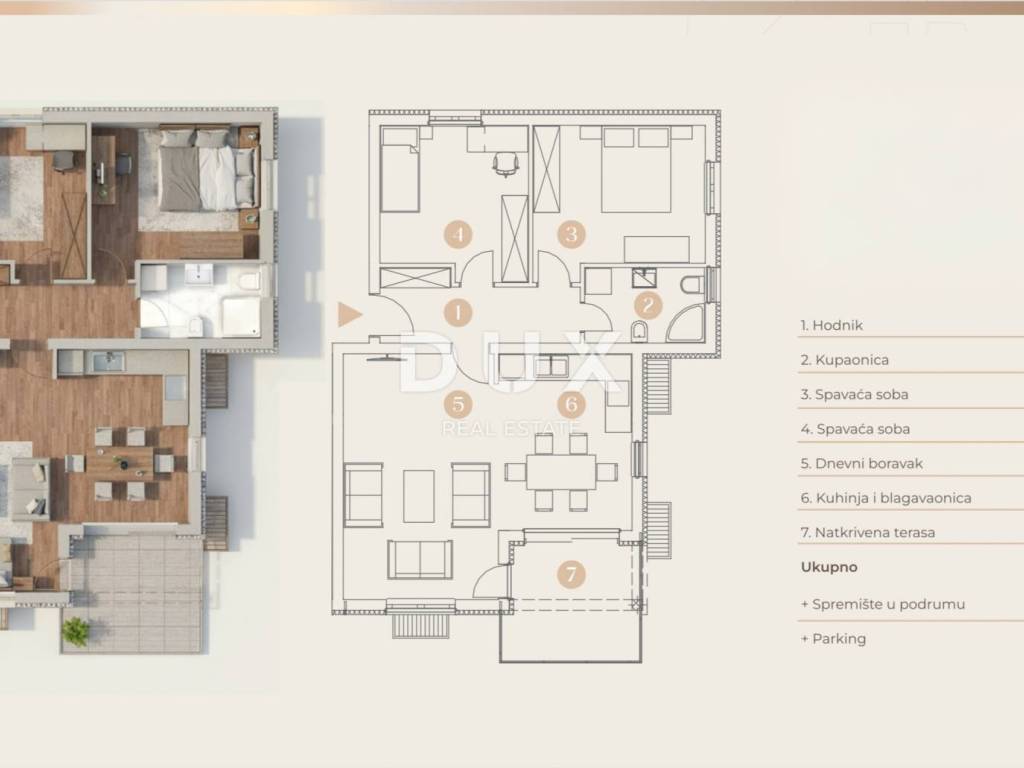 In the DUX offer we received an apartment located on the 2nd floor of an exceptionally high-quality new building that represents an ideal combination of modern design, functionality and comfort. The building itself consists of only eight apartments, which provides residents with additional privacy and a peaceful environment. Only the highest quality materials were used during construction, with special emphasis on details that ensure durability, aesthetic value and superior comfort.
