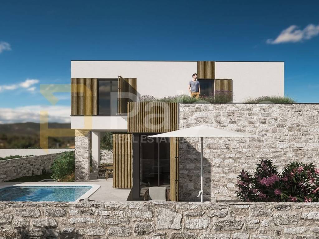 For sale is a modern luxury villa with a pool and its own solar power plant in a beautiful location in the village of Zaton near Šibenik. This project consists of a total of four modern villas, situated in a lovely location that offers privacy and a pleasant environment for its future owners.