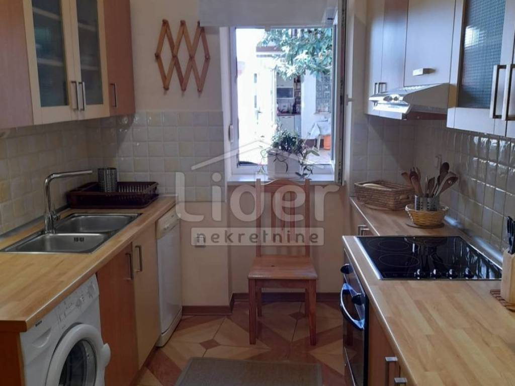 CRIKVENICA We are selling a row house of 105 m2 located in the center of Crikvenica, in the immediate vicinity of all services and the main beaches. The total living space is distributed over three floors: on the ground floor there is a living area consisting of a living room, kitchen, dining room, bathroom and storage room. On the north side of this floor there is also a yard that is used in agreement with two other neighboring apartments. An internal oak quality staircase leads to the first floor, where there are two bedrooms and a bathroom, and in the attic of 35 m2, there is another room. This property is categorized for rental services due to its ideal location, but also for daily living, and it has recently been completely renovated (new installations, roof, exterior and interior carpentry). It is very well equipped with custom-made furniture and we are selling it fully furnished. The property does not have its own parking space.