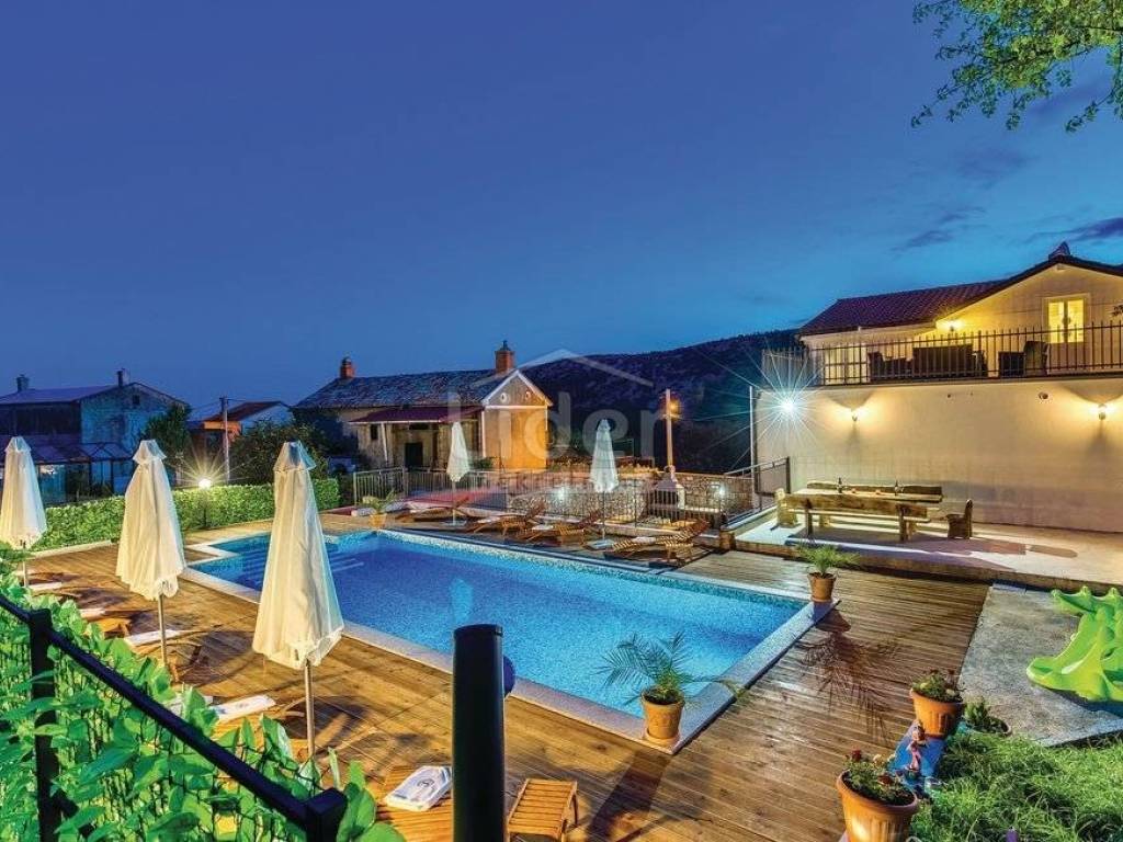 Bribir, we are selling a property consisting of 2 houses. Possibility of stay for 18 people. All rooms are air-conditioned, underfloor heating with pellets, solar water heating.