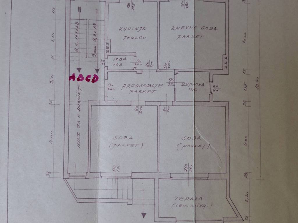 The apartment is located on the ground floor of a terraced house and consists of a hallway, two bedrooms, a living room, a kitchen with pantry, a bathroom and a terrace of 11 m2, a garden of 15 m2 and two taverns.