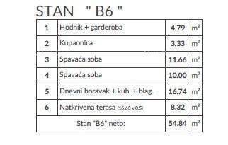 Sale of apartments in a new project, Pula!Residential project in Pula, a building with three floors and 12 residential units.Apartment B6, with an area of 54.84 m2, is located on the 1st floor of the building and consists of: hallway + wardrobe, living room with kitchen and dining area, 2 bedrooms, bathroom, and covered terrace. The apartments will be equipped with inverter air conditioning, underfloor heating in the bathrooms, high-quality ceramics, and flooring.The apartment includes a parking space.Move-in is expected by the end of 2026.For more information, please contact:Info: +385 91 611 57 06 +385 98 420 885 azra@almadominvest.com