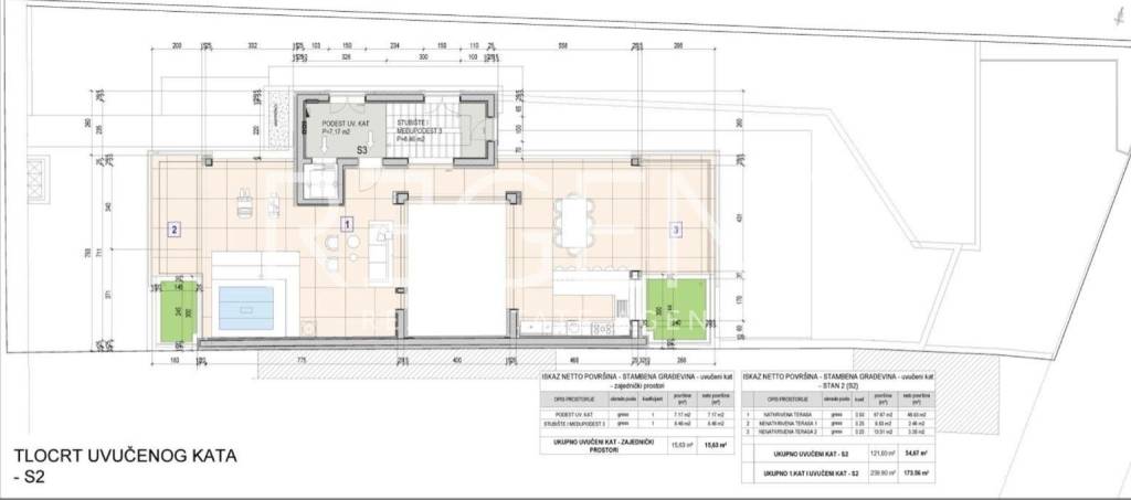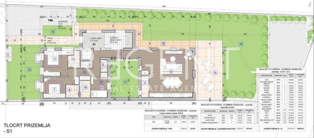 On one of the most desirable micro-locations in Zagreb, in Srebrnjak street in Šalata, a newly built villa of contemporary architectural expression is located. The property is situated in a quiet and green environment, with excellent connections to the city center and all key amenities. The villa is spread over four floors connected by an elevator and extends over 450 m² of living space, on a plot of land with a total area of 600 m². It is designed as a multi-apartment house, with the possibility of easy conversion into one representative family residence. The basement has a spacious garage with a capacity for five cars, an additional storage room and a utility room. The ground floor consists of a four-room apartment with access to a terrace and a landscaped garden. Upstairs is a spacious three-room apartment with a large living room and a covered roof terrace that provides additional outdoor space for living and relaxation. The property is built and equipped to high standards. Schüco aluminum joinery with triple glazing, electric blinds and shades, Daikin Altherma heat pump for heating and cooling, and underfloor heating are installed. The building has a Schindler elevator, an alarm system, video surveillance, security doors and preparation for smart management systems. Special attention has been paid to the horticultural landscaping of the yard. The villa has a total of five bedrooms, two uncovered outdoor parking spaces and an orientation towards the north, east and west. It is adapted for people with disabilities, and the energy certificate is in preparation. The documentation is in order, with a building permit and a title deed. Despite the quiet and secluded position, shops, kindergartens, bus lines and other everyday amenities are located in the immediate vicinity, which makes this location extremely functional for family life or investment. For additional information and arrangements for viewing, we are at your disposal.