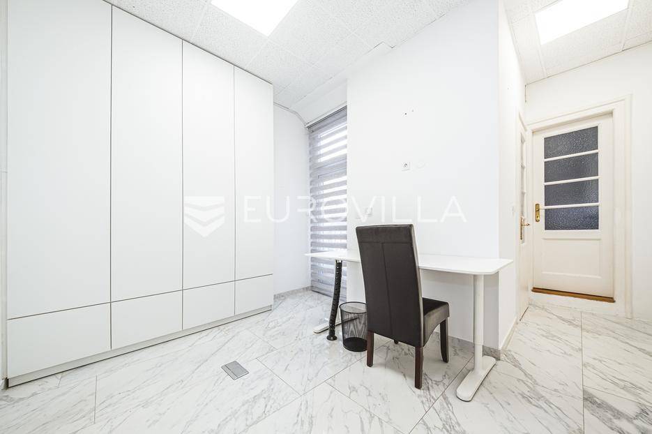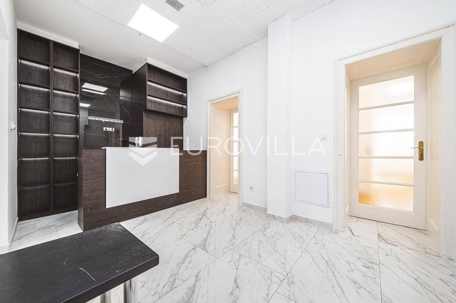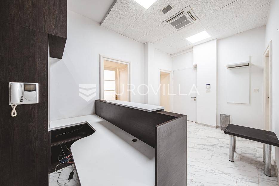 Donji Grad, Primorska, prekrasno uređen i djelomično namješten poslovni prostor površine 80 m2 u visokom prizemlju održavane zgrade. Sastoji se od predsoblja s recepcijom, 3 velike radne prostorije, čajne kuhinje, toaleta, manje radne prostorije te balkona. Podno grijanje i hlađenje putem dizalice topline. Protuprovalna vrata, PVC stolarija, videoportafon, alarm. Idealno za uredsku djelatnost, odvjetnički ured, ordinaciju... Odlična lokacija u centru grada, u blizini javnog prijevoza, parkinga, trgovina te svih potrebnih sadržaja. Ostale informacije na upit.