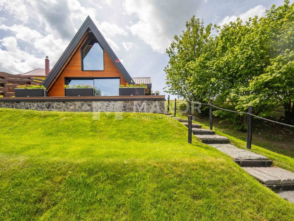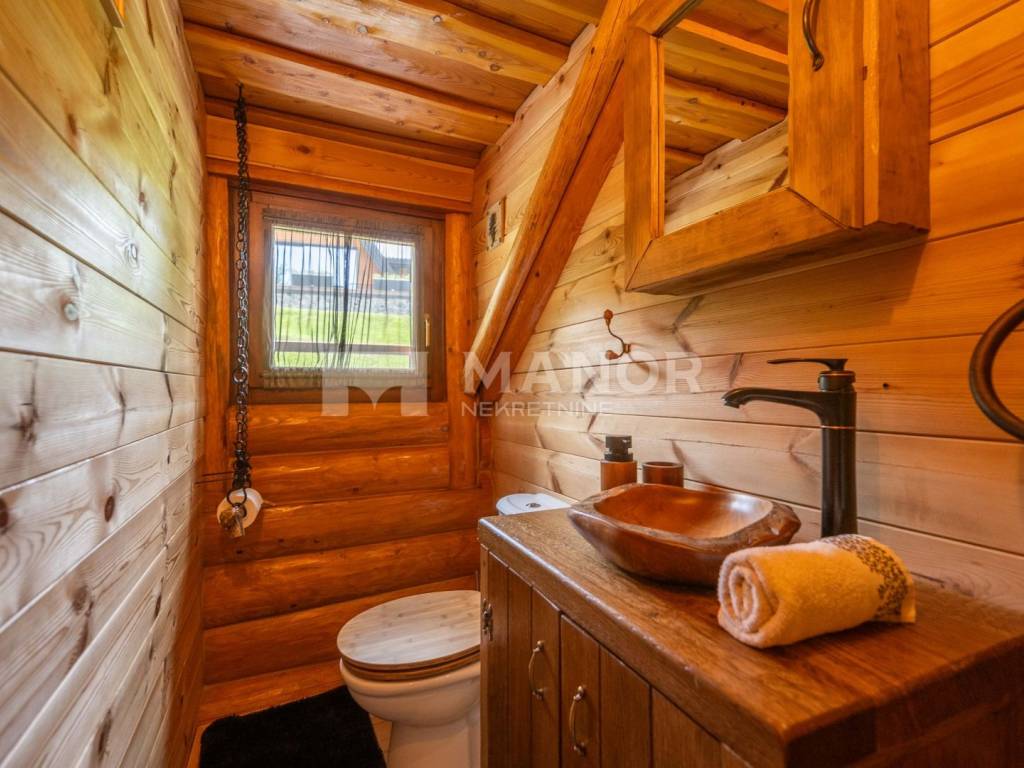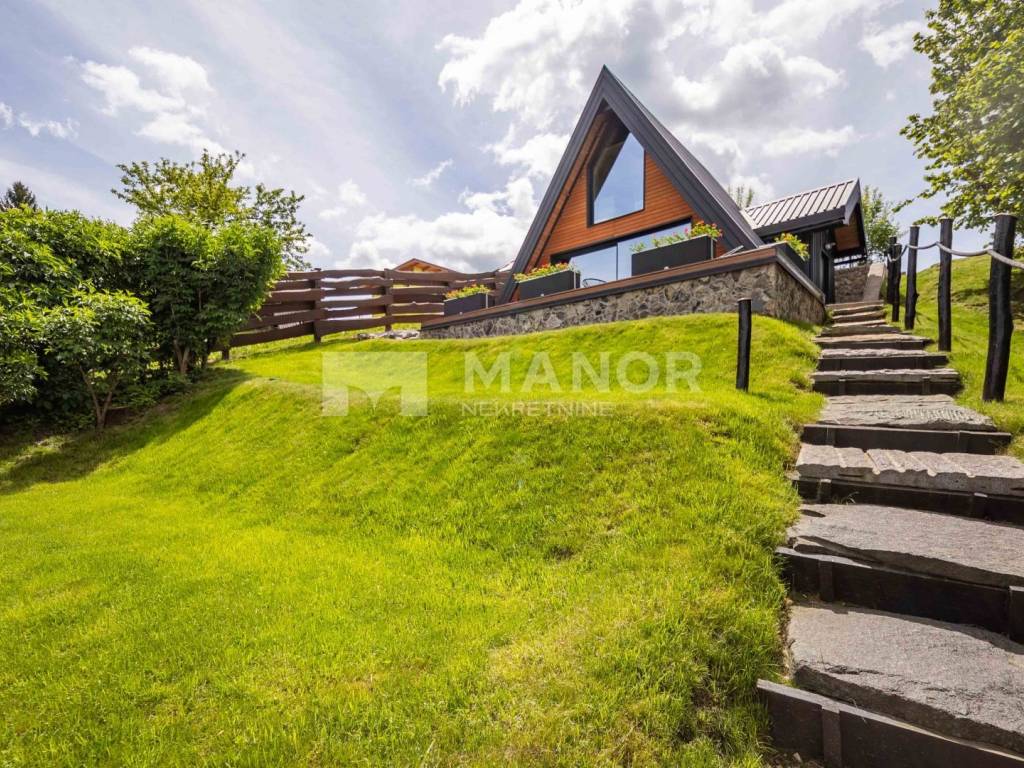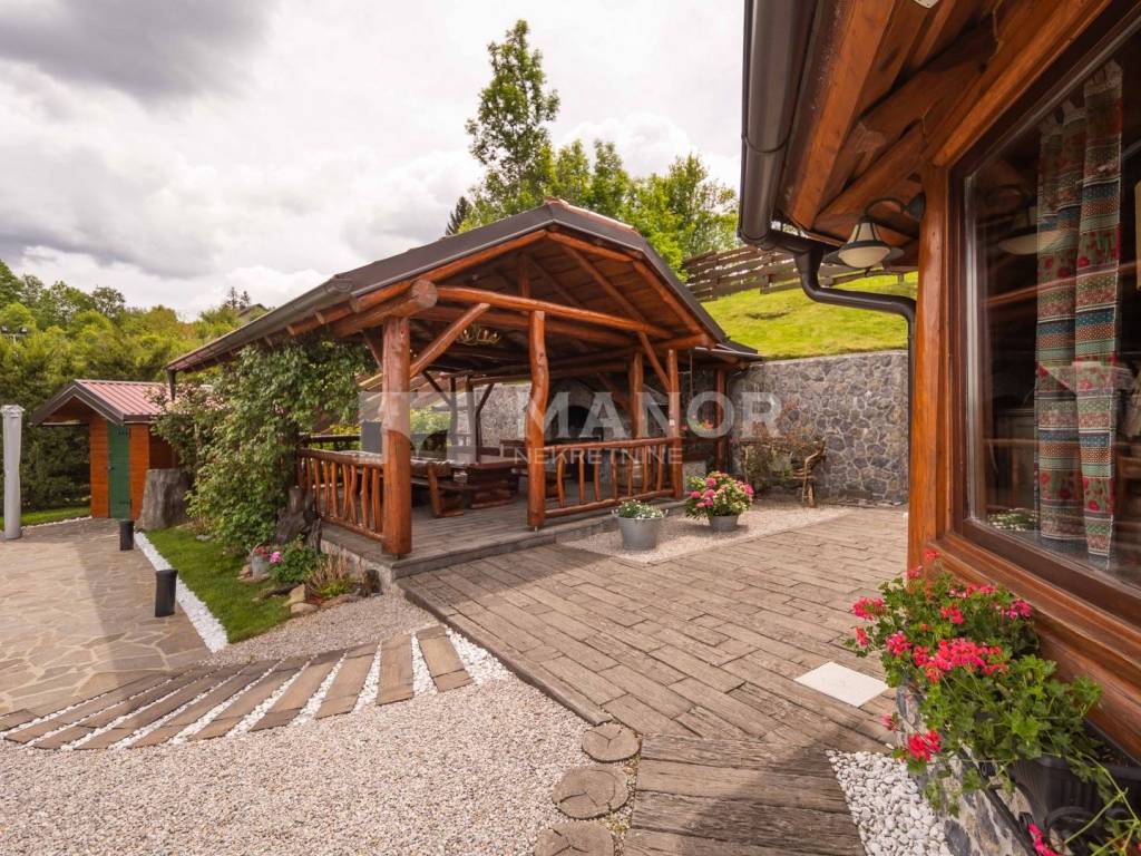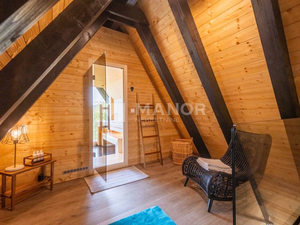 Manor presents a luxurious wooden villa with a pool and wellness area located at the top of a small village in the heart of Gorski Kotar, offering stunning panoramic views of forested slopes and the Slovenian Alps.