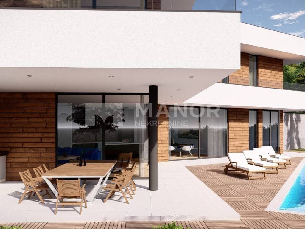 terasu površine 71 m2. U prizemlju vile nalazi se natkrivena terasa, dnevni boravak, kuhinja i blagovaonica,
