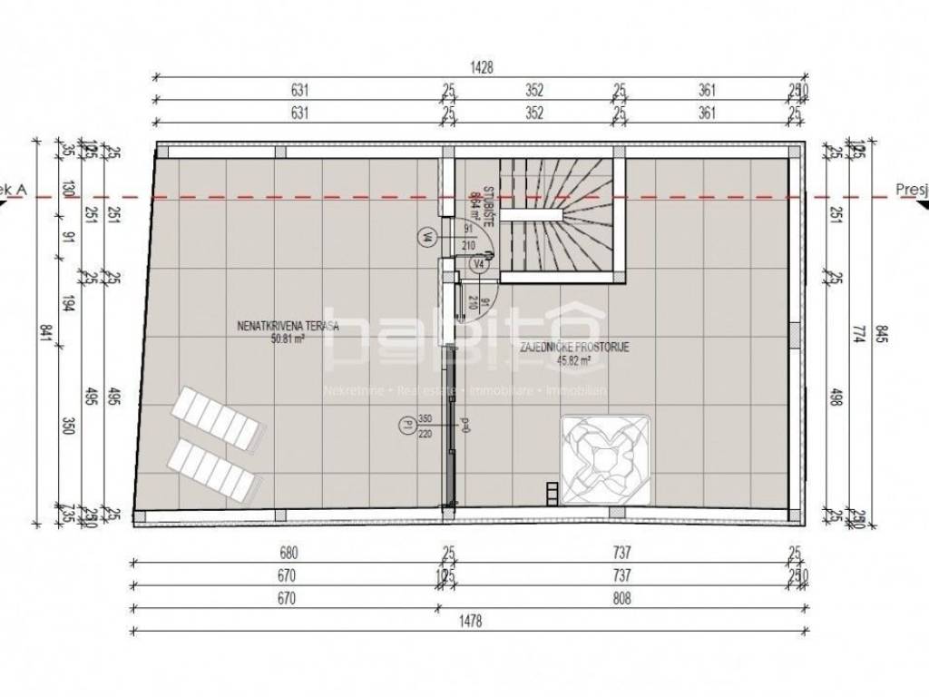 This apartment on the second floor (69.31 m2 + balcony 22.44 m2) offers something special! In addition to two bedrooms, two bathrooms and an open living area, there are also two terraces on the third floor - closed (45.82 m2) and open (50.81 m2)! Ideal for those looking for more than just an ordinary apartment. Two parking spaces included.