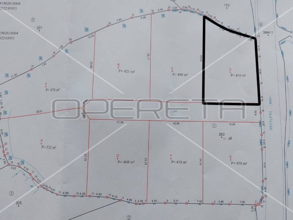 Građevinsko zemljište ukupne površine 3993 m2 koje je geodetskim elaboratom podijeljeno na 8 cjelina, površina od 408 do 532 m2.