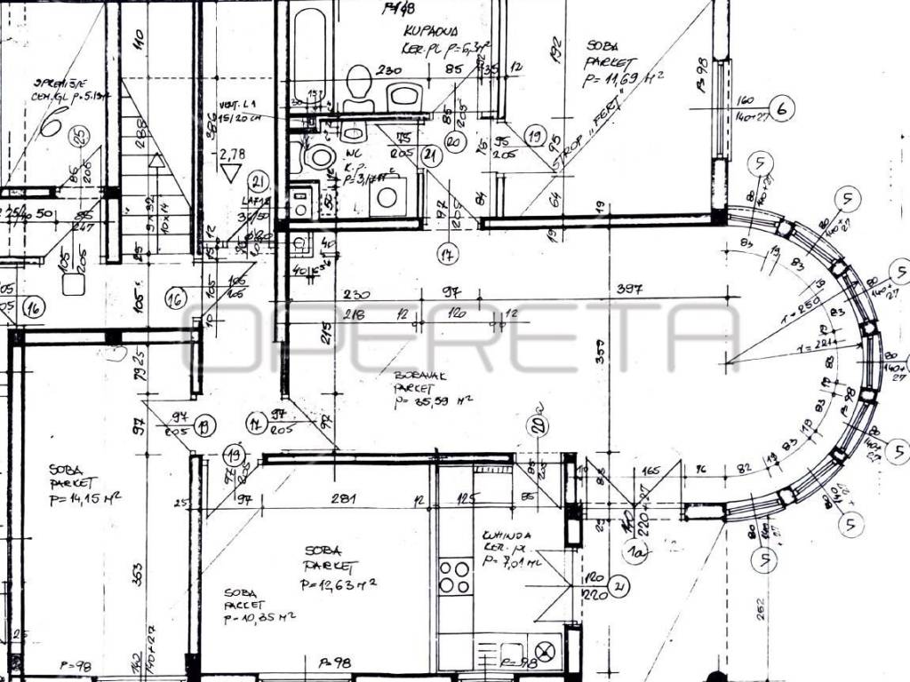 Vlasništvo čisto 1/1, bez tereta. Stan je u zk upisan 112.5 m2 plus spremište, imaju poseban ugovor i potpisanu suglasnost svih susjeda po kojoj stanu pripada cijeli vrt.