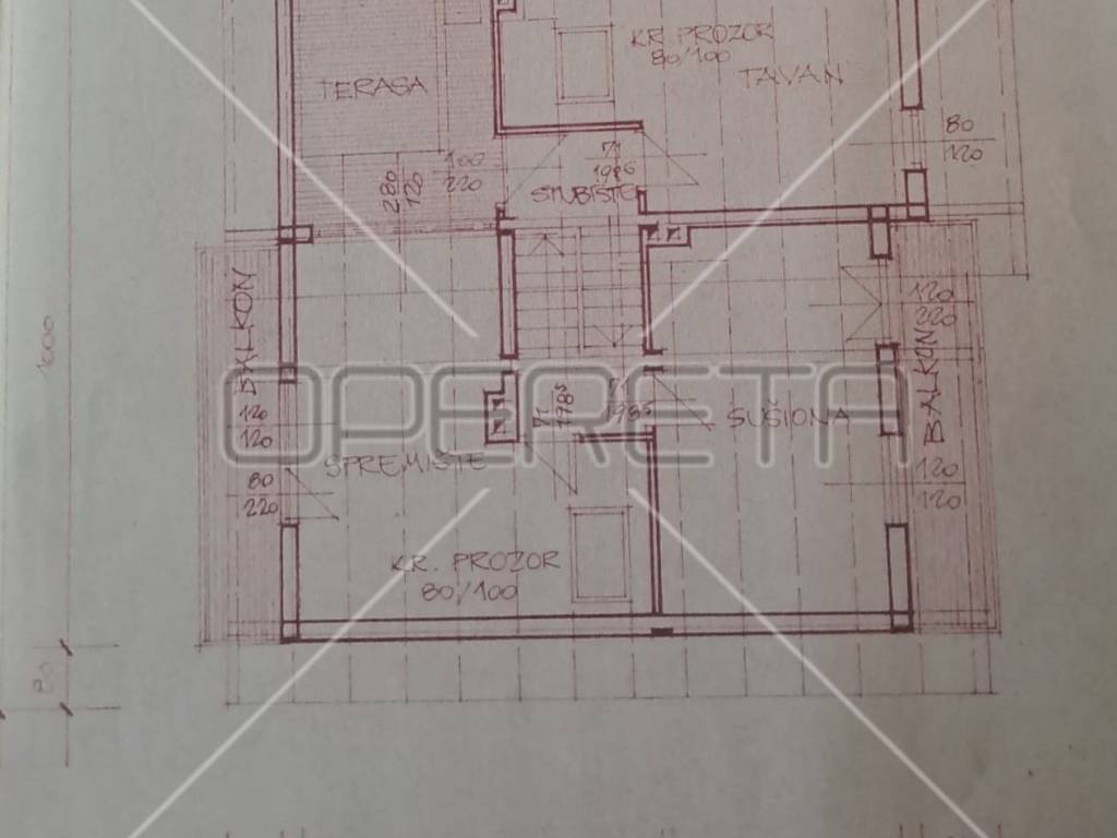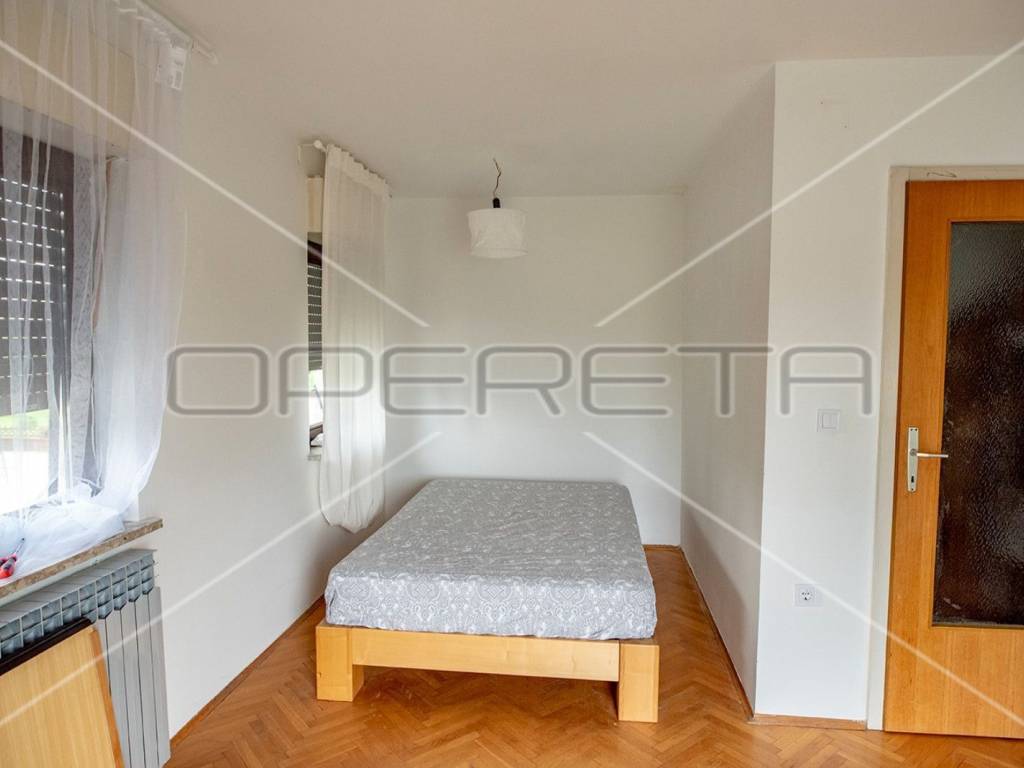 Samostojeća kuća na tri etaže, na mirnoj lokaciji, uređena za najam. Sastoji se od prizemlja u kojem je dnevni boravak s blagovaonicom, kuhinja i stepenište na polukat gdje su dvije velike sobe i kupaonica s wc-om. Na sljedećem polukatu su još dvije sobe sličnih veličina i iznad je roh bau tavan od 80m2 tlocrtno. U suterenu je garaža od 30m2, a iza kuće je pomoćna kućica od isto 30m2. Vrlo prostrana kuća dobrog rasporeda, novih instalacija, kupaonice i bojlera za centralno plinsko grijanje. Useljiva odmah. Prlika!