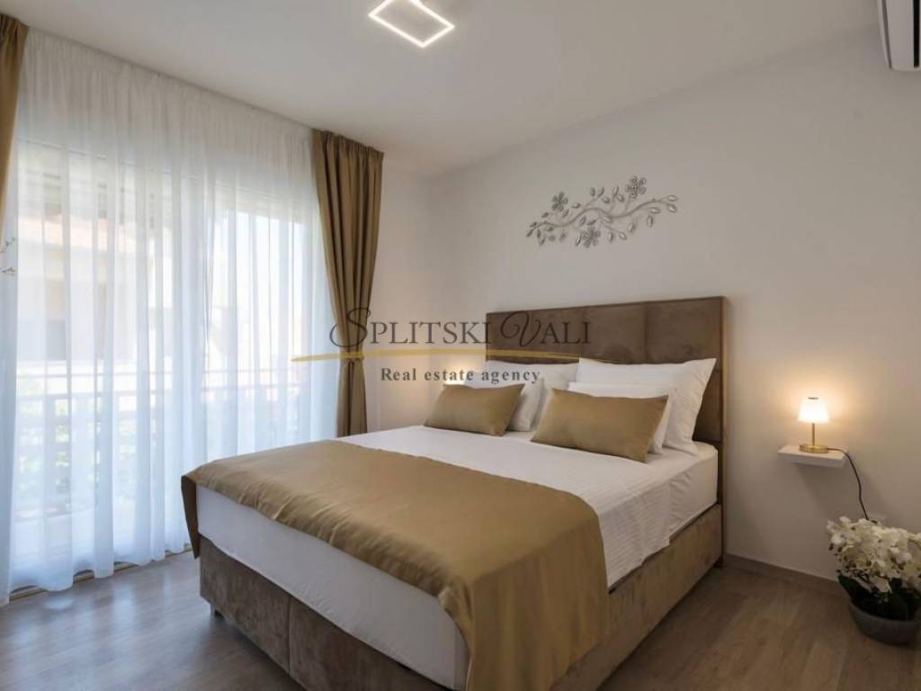 Stan se sastoji od hodnika, kuhinje s blagovaonicom, dnevnog boravka, dvije spavaće sobe, dvije kupaonice (jedna s kadom, druga s tuš kabinom), balkona te pripadajućeg vrta.