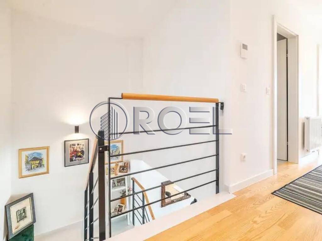 Sastoji se od ulaznog hodnika, kuhinje i blagovaonice s prostranim dnevnim boravkom koji ima izlaz na vrt, te toaleta, na donjoj etaži. Na gornjoj etaži nalaze se tri spavaće sobe i dvije kupaonice s toaletom.Stanu pripada spremište u u podrumu i vanjsko parking mjesto koje vodi izravno u sam stan.