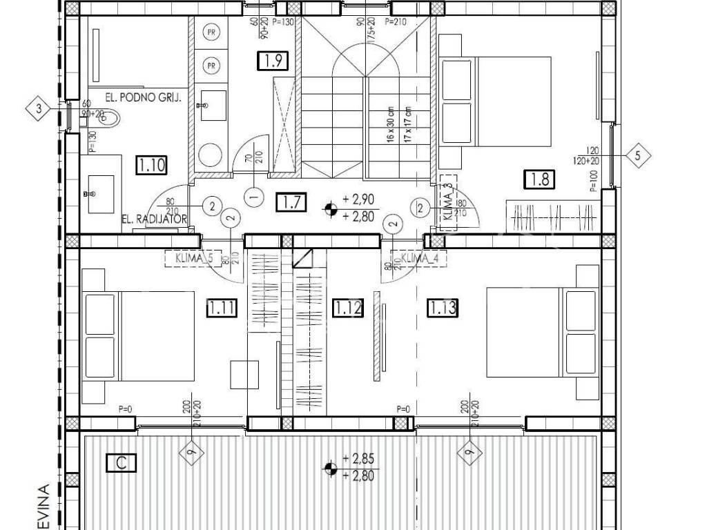 This contemporary villa, completed in 2025 and designed as a family property that equally suits tourist use, is situated in Kaštel Novi on a 517 m2 plot.