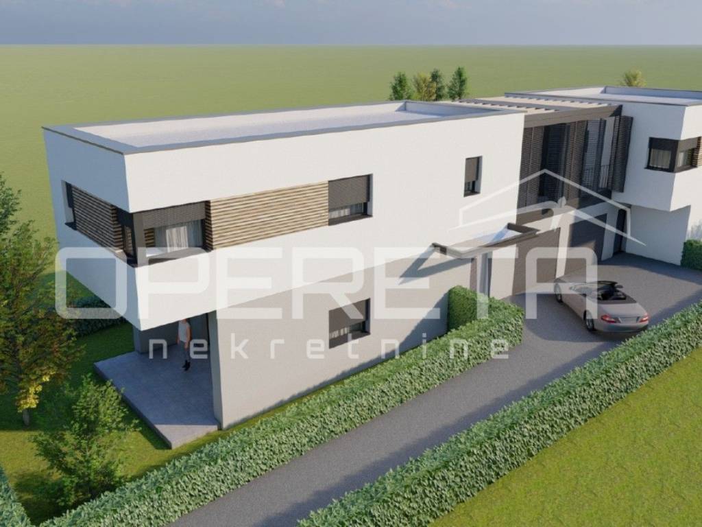 Prodaja, Novogradnja, Kuća, Granešina Nova 134 m2. Prodaje se dvojna kuća u Granešini, udaljena svega par minuta od Grada mladih. Kuća se nalazi na zadnjoj građevinskoj parceli prije poljoprivredne zone, te je okružena mirom i zelenilom uz samu šetnicu. Kuća se sastoji od 2 kata. 1. kat sastoji se od ulaznog prostora, dnevnog boravka povezanog sa blagavaonicom, wca, terasa (dio u formi loggie), terasa (natkriveni dio), vrt (103m2), garaža, vanjsko parkirno mjesto. 2. kat stepenište, radni prostor, hodnik, 3 spavaće sobe, kupaonica, izba, terasa. grijanje, plinsko etažno, te podno grijanje. Dobra prilika!