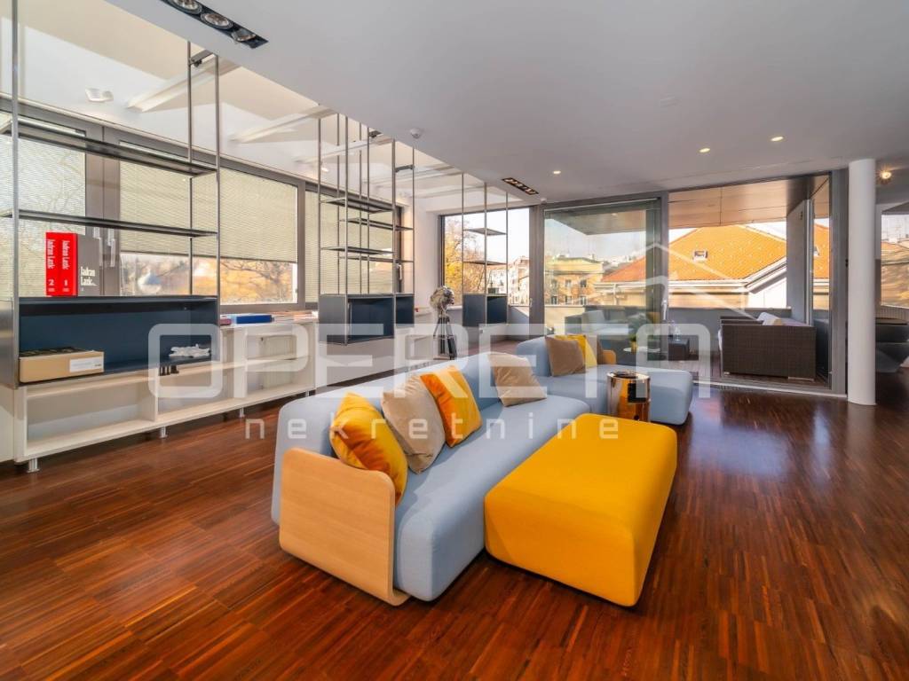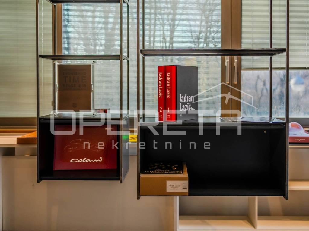 Poslovno stambena zgrada ukupne površine 602,07 m2 nalazi se izvrsnoj lokaciji na Ribnjaku, pješačkoj udaljenosti od samog Trga te ostalih važnijih sadržaja. Nekretnina je djelo čuvenog arhitekta Borisa Fiolića. Idealno za diplomatska predstavništva. U naravi, zgrada se sastoji od 5 etaža: SHOWROOM od 106,85 m2 (galerijski podrumski prostor sa polu - profesionalnom kuhinjom i više sanitarnih čvorova prikladno za poslovne sastanke kao i neformalna druženja), UREDSKI PROSTOR U PRIZEMLJU od 98,35 m2 (moguća namjena stana ili ureda), UREDSKI PROSTOR NA PRVOM KATU od 106,89 m2 (moguća namjena stana ili ureda), LUKSUZNI TROETAŽNI STAN NA DRUGOM I TREĆEM KATU I TERASI od 262,89 m2 (trosoban stan, 2019. preuređen u art stan - galeriju, a trenutno potpuno opremljen i u funkciji kao uredski prostor. Od kraja 2023. godine preuređen u luksuzni art apartman pogodan za najam VIP gostima ili osobno stanovanje. Projekt uređenja izradio je arhitekt Marko Murtić), UREDSKI PROSTOR U DVORIŠNOM OBJEKTU od 27,09 m2. Rekonstrukcijom 2018. godine nadograđeno je panoramsko dizalo sa izlazom na 2. katu nekretnine što omugućava i zaseban, izdvojen ulaz u zgradu. Prilikom uređenja interijera korišteni su materijali i oprema visoke kvalitete, ugrađeni su pametni sustavi grijanja i hlađenja, kao i sustav videonadzora sa protuprovalnom zaštitom i vatrodojavom. Na privatnom parkingu u dvorištu zgrade ima dovoljno mjesta za 6 - 8 automobila. Dvorište je uredno održavano i planski hortikulturno uređeno.