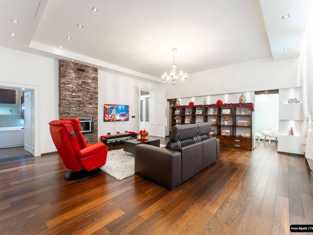 - dnevni boravak opremljen namještajem proizvođača Natuzzi i Keyton,