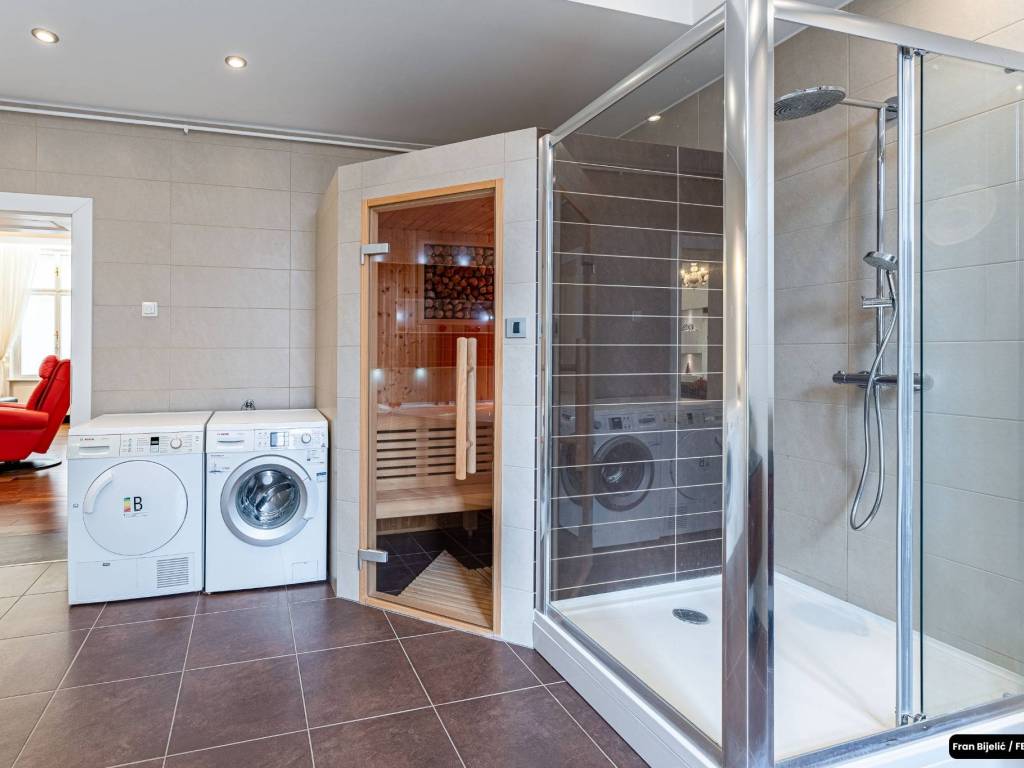 - kupaonica opremljena tuš kabinom, saunom i jacuzzijem, perilicom i sušilicom marke Bosch,