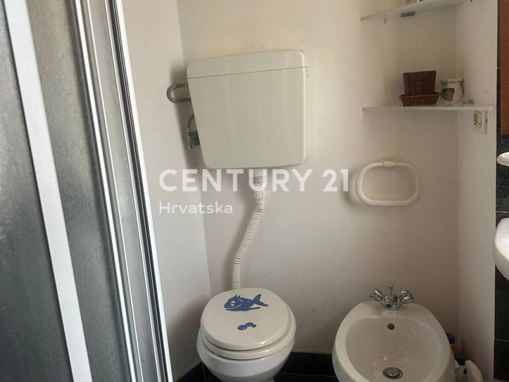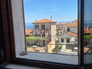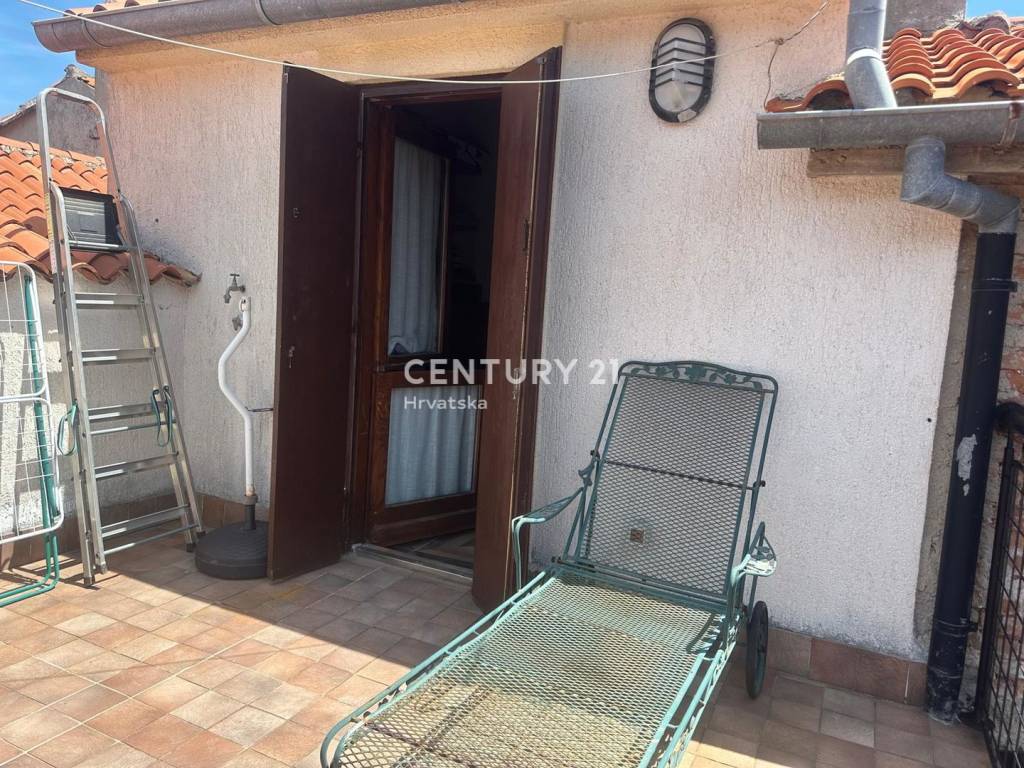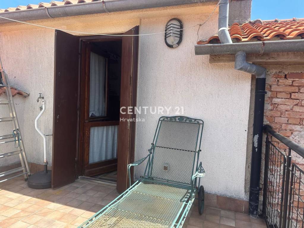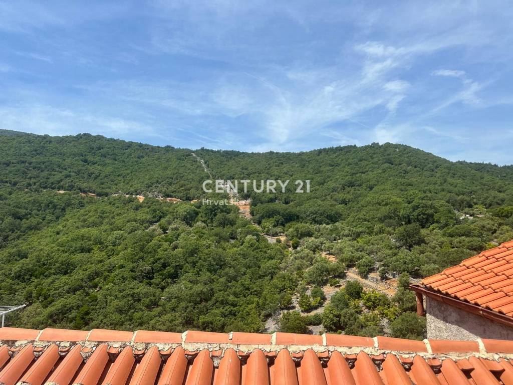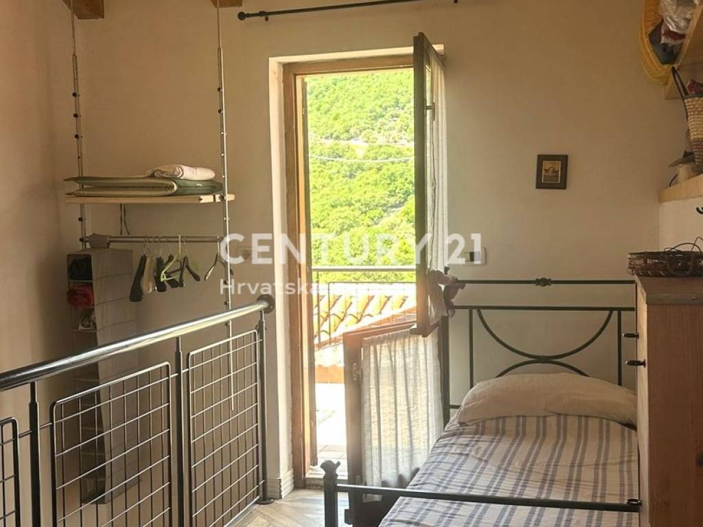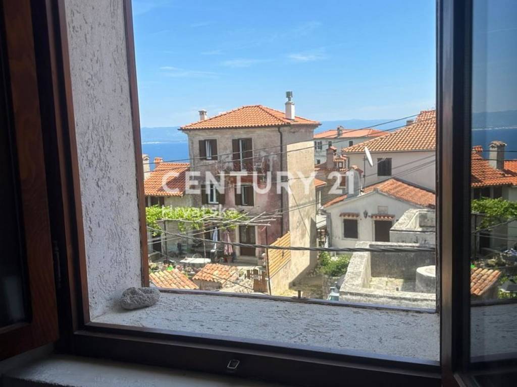 The room offers a beautiful view of the sea, the village, and Rijeka in the distance, while the terrace overlooks nature.