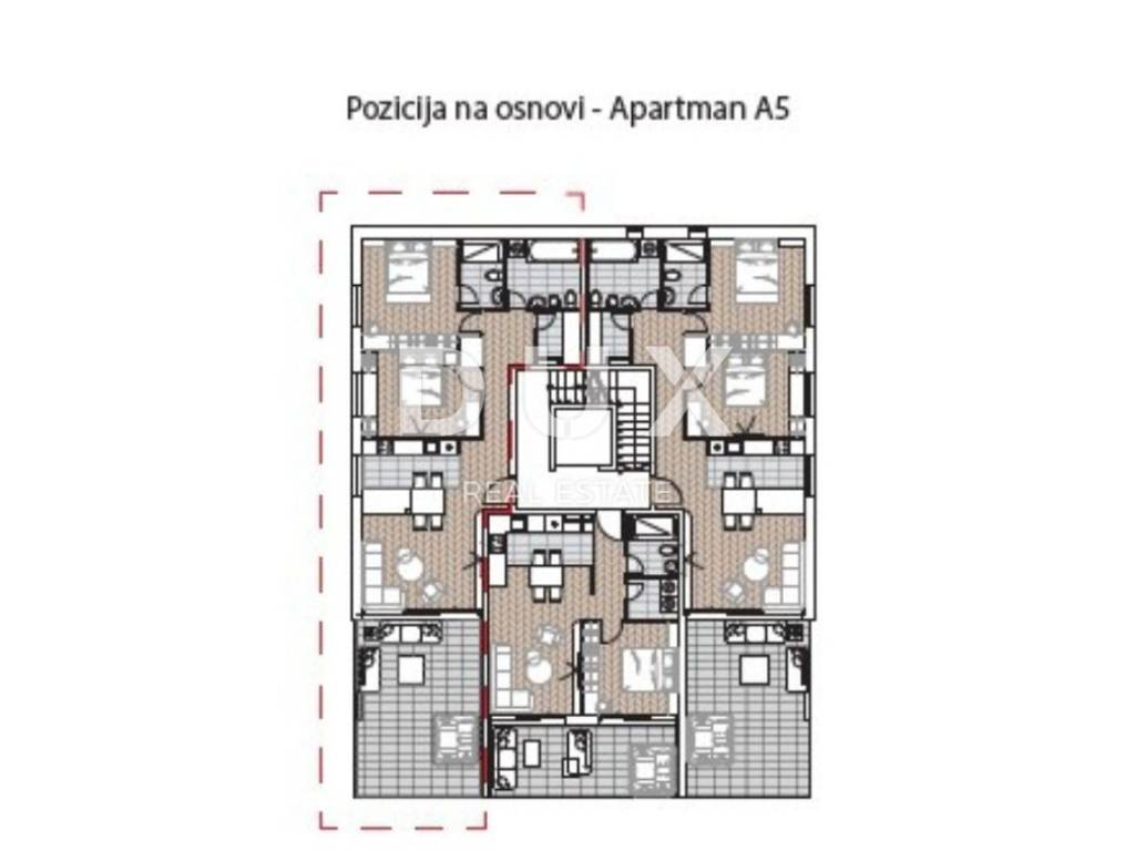 OPATIJA, CENTER - excellent apartment in a new building above the center of Opatija We are offering an exclusive apartment A5 with an area of 91.47 m2 on the first floor of a new building above the center of Opatija, with a large terrace, balcony and garage. The apartment consists of two bedrooms with two en suite bathrooms, a beautiful open space living room, dining room and kitchen of 24.93 m2. The large open space opens onto a 16 m2 terrace with a jacuzzi and an outdoor area for socializing, which provides incredible opportunities for outdoor relaxation. The apartment is located in a new building of 10 apartments in an excellent location - above the center of Opatija, thus guaranteeing excellent access to all the accompanying amenities of the city - the Lungomare promenade, the beach in the center, the summer stage in Opatija and the Gervais cultural center. It is located 250 meters away from the sea. The apartment has a place in the garage and a storage room of 2.53 m2. This is a perfect opportunity to buy real estate in Opatija, perfect for living as well as tourist rental. Dear clients, the agency commission is charged in accordance with the General Terms and Conditions. https://www.dux-nekretnine.hr/opci-uvjeti-poslovanja ID CODE: 29918 Marko Šutanovac Agent s licencom Mob: +385 91 189 8332 Tel: +385 91 480 8808 E-mail: marko@dux-nekretnine.hr www.dux-opatija.com