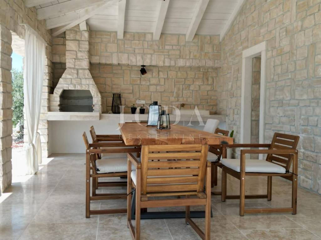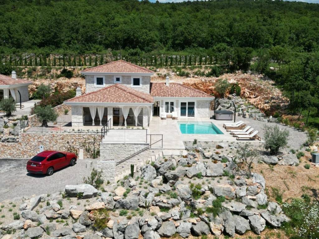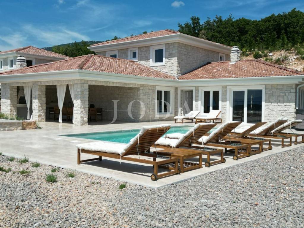 The stone villa has a rustic style, built of Istrian Kanfanar stone, with an area of 200 m2 + 36 m2 garage + 10 m2 engine room + 35 m2 heated swimming pool with water electrolysis and ceramics installed in the pool, while the total area of the plot, which is decorated with indigenous Mediterranean plants, olive trees and natural stone, is up to 1200 m2. The villa is located in one of the most beautiful places in Kvarner, in Jadranovo, and represents a perfect combination of tradition and luxury. Inside it hides a modernly equipped interior with all the necessary contents for the undisturbed enjoyment of your dream holiday or residence. The villa can accommodate eight people and has four bedrooms with en-suite bathrooms. On the ground floor of the villa there are two bedrooms, a spacious, bright living room with an additional sofa bed for two people and a modern kitchen with dining room. On the upper floor there are two further bedrooms with panoramic sea views. The entire space is air-conditioned, a heat pump (underfloor heating) and a fireplace are installed. On the stone-paved terrace of the villa there is a beautiful, ceramic-lined, heated pool with water electrolysis, size 35 m2 and depth 1.7 m, then a hydromassage tub (Jacuzzy) for 6 people, eight sun loungers with cushions, an outdoor table made of Slavonian oak and an outdoor barbecue made of masonry stone. There are also 2 parking spaces in the garage in the villa's fully fenced garden. The villa is located in an isolated place, far away from the noise and hustle and bustle of the city and is surrounded by greenery and unspoilt nature, where you can enjoy the scent of clean air and pine trees. The surroundings of the seaside town of Jadranovo offer a variety of activities, where everyone will find something to their liking. The nearest beach is 900 metres from the villa, where you can enjoy the crystal-clear Adriatic Sea and water sports such as swimming, diving, sailing or fishing. ID CODE: 5824 Josip Šikić, mag.oec Agent s licencom Mob: +385 91 890 4694 Tel: +385 51 403 771 E-mail: info@joda-nekretnine.hr www.joda-nekretnine.hr