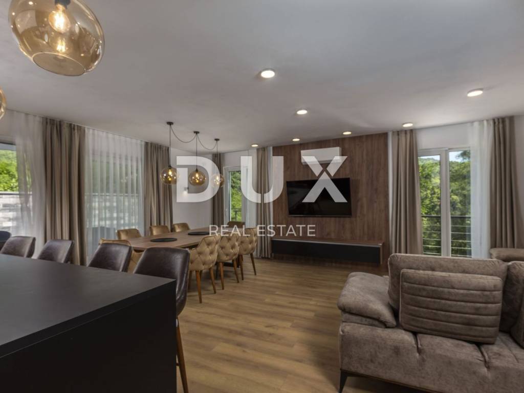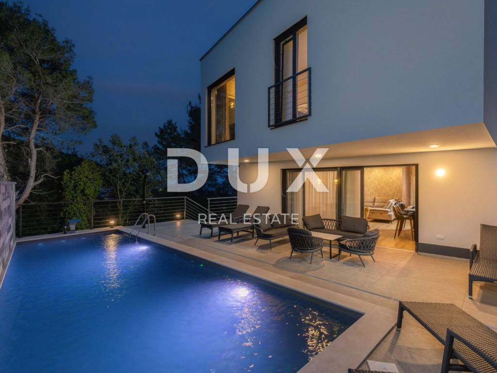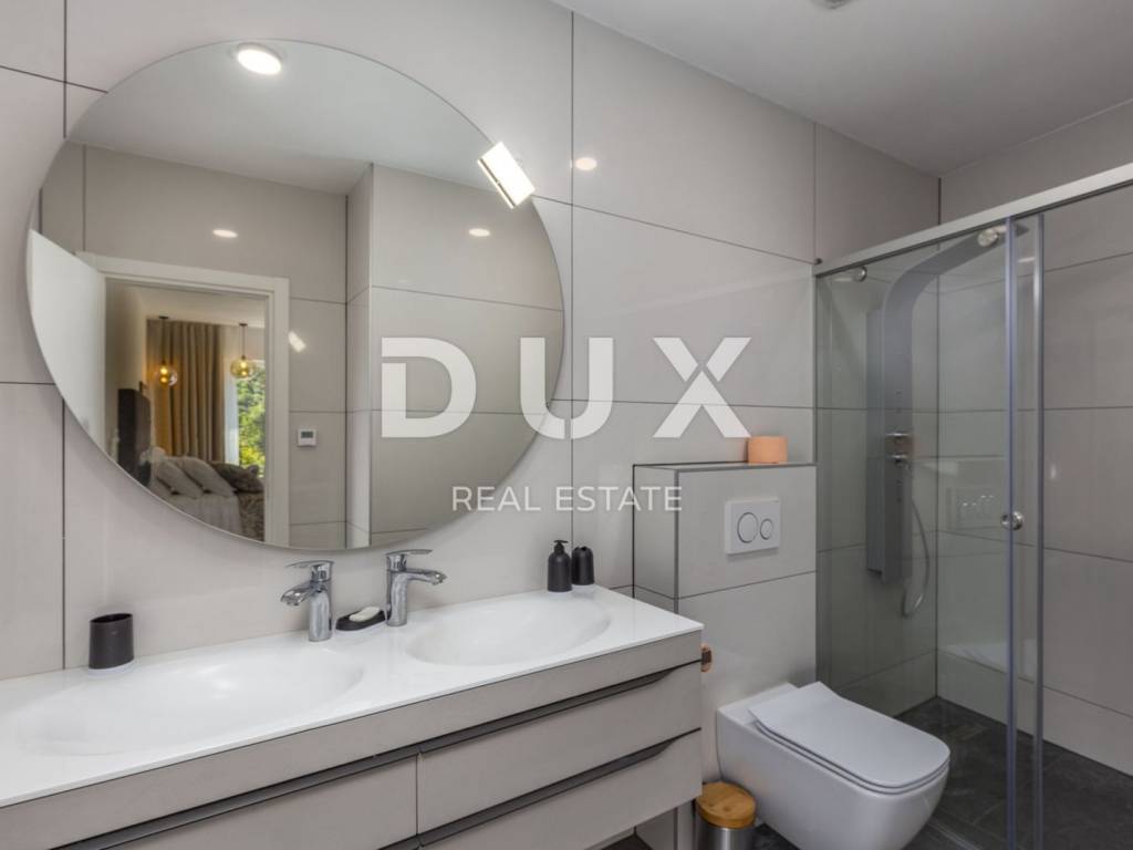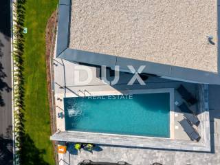 OPATIJA - OPPORTUNITY - modern semi-detached villa with pool and wellness area 500m from the beach, perfect investment A modern semi-detached villa built in 2022 is located 500 meters from the famous Mošćenička Draga beach. With a modern style of construction, it offers 225m² of living space, while the land area is 455m², providing a serene oasis of peace. The property consists of 3 bedrooms with en-suite bathrooms, a large open-space living room that leads directly to the private pool and its own wellness area, featuring a jacuzzi and sauna. The green surroundings, close proximity to the beach, sea view, and garden are among the advantages that make this house stand out on the market. The house is decorated with custom-made designer furniture, with an emphasis on open spaces and glass walls oriented towards the sea. Features include 10 cm facade insulation, high-quality parquet, luxury curtains, a well-maintained garden with exotic plants, a private fenced parking area, alarm system, video surveillance, and a heated swimming pool of 30m². This villa is a perfect opportunity, especially as an investment for companies or individuals for tourist rental. The property is designed to meet 5-star categorization standards, and assistance with future rentals is available (including property management and rental services). This is a rare find on the market at this price—an excellent investment that can be easily rented out through a property manager. Dear clients, the agency commission is charged in accordance with the General Business Conditions: www.dux-nekretnine.hr/opci-uvjeti-poslovanja ID CODE: 35539 Marko Šutanovac Agent s licencom Mob: +385 91 189 8332 Tel: +385 91 480 8808 E-mail: marko@dux-nekretnine.hr www.dux-opatija.com