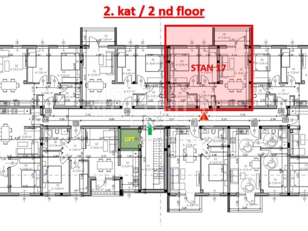 Apartment No. 17 is offered for sale in a new residential project in the Monvidal area of Pula, located in Building B, on the 2nd floor of a modern apartment building with an elevator.