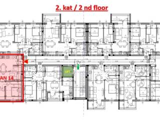 Apartment No. 14 is offered for sale in a new residential development in the Monvidal area of Pula, located in Building B, on the 2nd floor of a modern apartment building with an elevator.