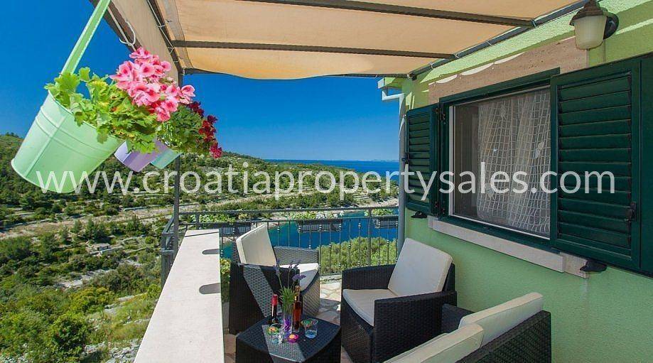 Beautiful house with an olive grove, on a fantastic location.The house has 87 m2 of living space and consists of a bedroom, bathroom, kitchen, dining room and living room. There is also a large terrace that extends across the entire upper floor of the house.Around the house there are plenty of small gardens, as well as an outdoor stone barbecue grill.The house is located on a large agricultural plot of 2300 m2, which is planted with olive trees.It is located on the north side of the island, with a beautiful view of the Korcula channel.Because of its exceptional location and privacy, this property is ideal for someone looking for peace and quiet.The house is located 300 meters from the sea and beautiful beaches.For further questions please contact our CPS office in Split.