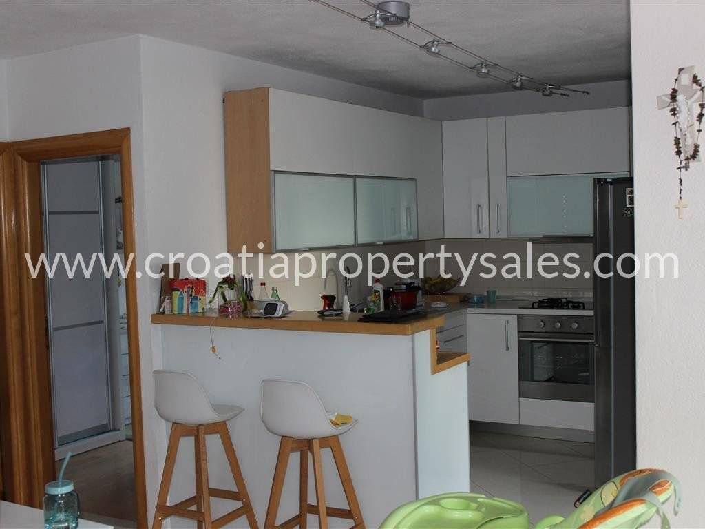 Beautiful, fully, furnished apartment house near the center of Omis and the canyon of the river Cetina.The house consists of ground floor and 2 upper floors. On the ground floor on the south side of the house there are 2 studio apartments with outdoor terraces, and on the north there are 2 garages.On the first floor there is a two bedroom apartment of 60 m2, and a two bedroom spacious apartment of 93 m2 south orientation with a large terrace.On the second floor there is also a two bedroom apartment of 60 m2 and a duplex penthouse with a large terrace.Behind the house there is a swimming pool measuring 8x4 m, and an additional house for socializing with an indoor barbecue grill.Situated in a quiet location but still close to the city center, the house is ideal for both living and tourist rental.
