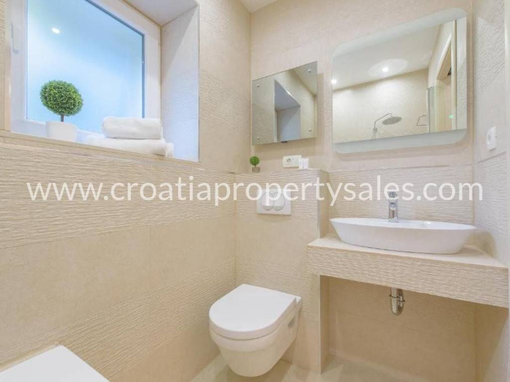 Three apartment units on the ground floor of the building, in an exceptional location, just a few meters from the sea.The apartment has a total area of 55 m2 and is divided into three separate units; two one-room apartments and one room with a bathroom.All three units are fully equipped.The apartment is south-facing and surrounded by greenery.The beach and the city center are in the immediate vicinity.It is possible to park nearby on a public area.An excellent investment for tourism, but also an ideal property for housing.