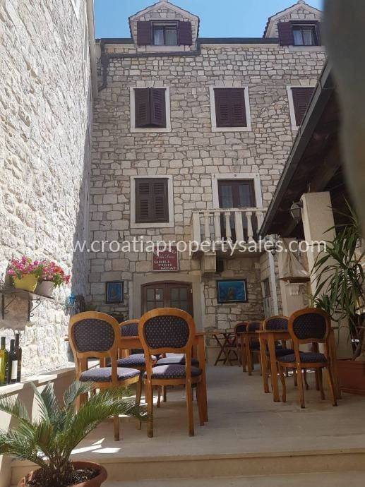 House in the very center of the town, first row to the sea with 6 apartments and a well-established restaurant that can be converted into business premises.The facility is currently in business use, but it can also be adapted for private purposes as a holiday home.The house has two separate entrances, one through the restaurant and the other directly to the apartment. Both the restaurant and the apartments are fully equipped.On the ground floor there is a covered terrace of approx. 60 m2 with two sanitary facilities + an open terrace of approx. 80 m2 (possibility of upgrading to 2 floors + attic).The main entrance is currently through the restaurant, which is completely decorated and furnished with all facilities, appliances and documentation.On the ground floor, with a separate entrance, there is a 20 m2 apartment with a terrace. In the basement there is a separate apartment of 25 m2 with a private terrace.On the first floor there are two studio apartments with a total area of approx. 80 m2 with a terrace. On the second floor, there are two apartments with a total area of approx. 80 m2 with a covered terrace of approx. 30 m2 + a 25 m2 storage room that serves as a laundry since it has a washing machine, dryer and ironing board.In the attic there are two apartments with a total area of 80 m2 with a view of the sea and the old town.