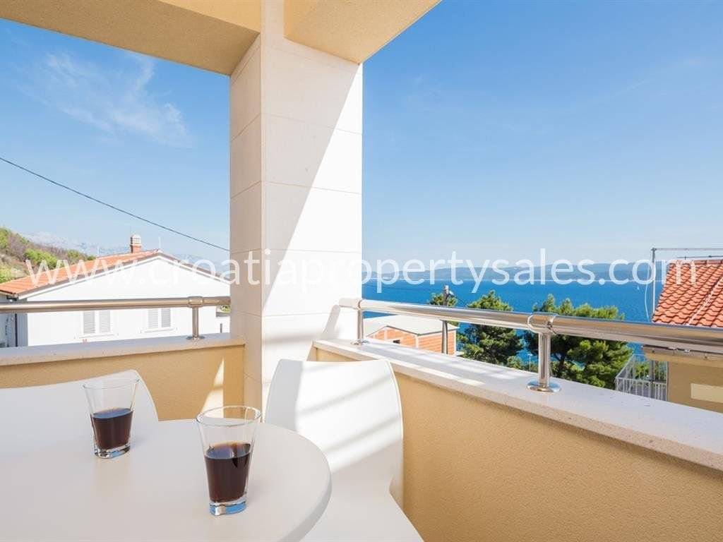 Nice apartment house in a quiet location in a small town near Omis.This multi-storey apartment building consists of a ground floor and 2 floors.On the ground floor of the house there is a one-bedroom luxury apartment and a laundry room.On the first and second floor there are 2 one-room apartments and one studio apartment each. All apartments have access to terraces with a beautiful view of the sea and islands.All apartments are air-conditioned, fully furnished and equipped and are being sold as such.Behind the house there is a barbecue and a sitting area sheltered from the sun. The house also has an attached garage for one car.To all those who want to live near the sea and have an additional income, we recommend this property, which has already been established as a tourist destination.