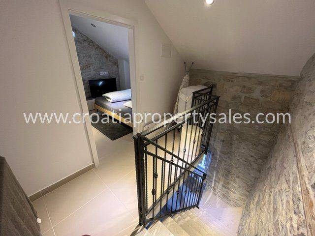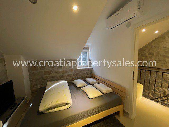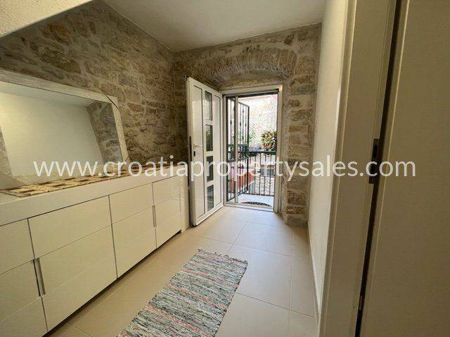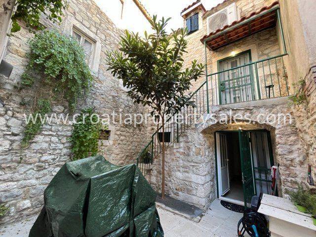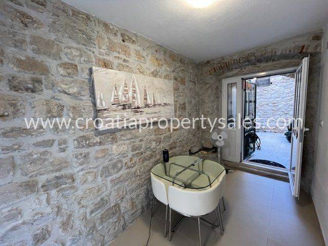 An old stone house in a row in Kaštela, in the very center, 50 m from the sea.The house has been completely renovated and offers many possibilities.It consists of 3 floors, and each floor is 26 m2 and has a yard on the inside of the house of 33 m2.Each of the floors has a bedroom and a bathroom, and there is a storage room in the yard. The house does not contain a kitchen, but it has all the necessary facilities to set it up.It does not contain a parking space, but it has direct access by means of transport.The distance to the airport is only 8 km.