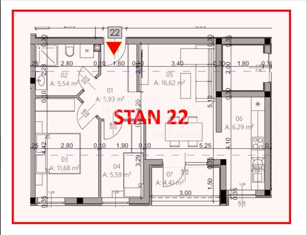PULA – MONVIDAL | NEW BUILD | APARTMENT 13 – 2ND FLOOR | 54.96 m²