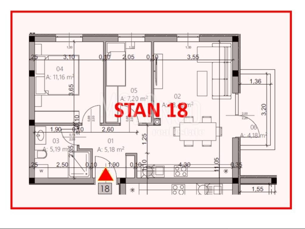 total area: 54.57 m²