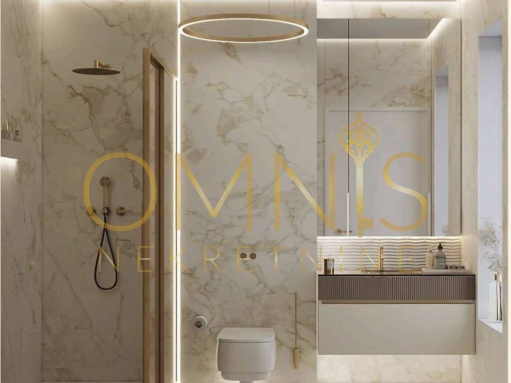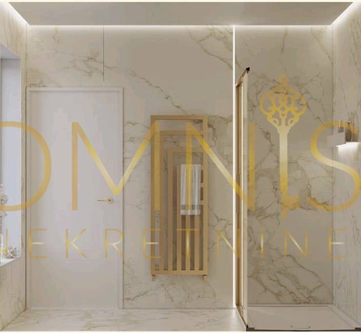 Stan se odlikuje vrhunskom kvalitetom gradnje i luksuznom opremom. Prostrani dnevni boravak povezan je s kuhinjom i blagovaonicom u otvorenom konceptu, a veliki prozori pružaju obilje svjetla i prekrasan pogled na more.