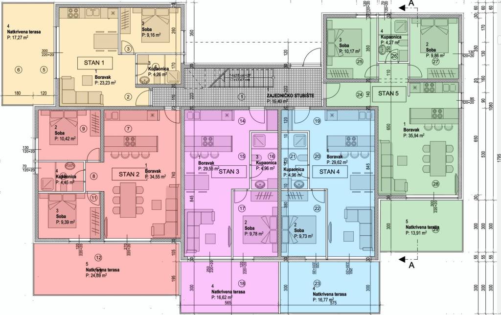 Apartment S11 - 2nd floor - living area 36.65 m2 (1 bedroom + bathroom) + covered terrace (17.27 m2 - West) + outdoor parking space PM11, total net area 47.72 m2 = 165,000 EUR