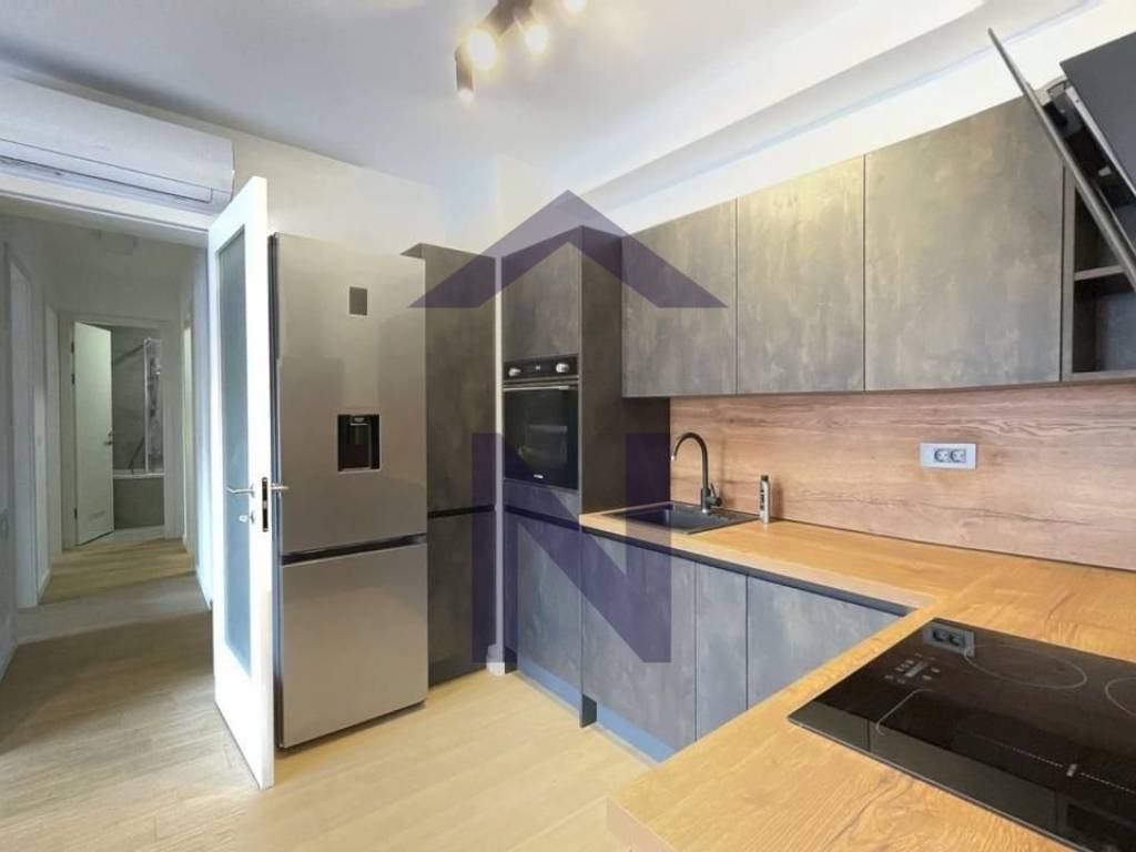 Stan je djelomično namješten s kuhinjom koja je potpuno opremljena - pećnica, indukcija, hladnjak, napa, perilica posuđa te ima ugradbeni ormar u hodniku, a bit će postavljeni ormari i u spavaćim sobama.