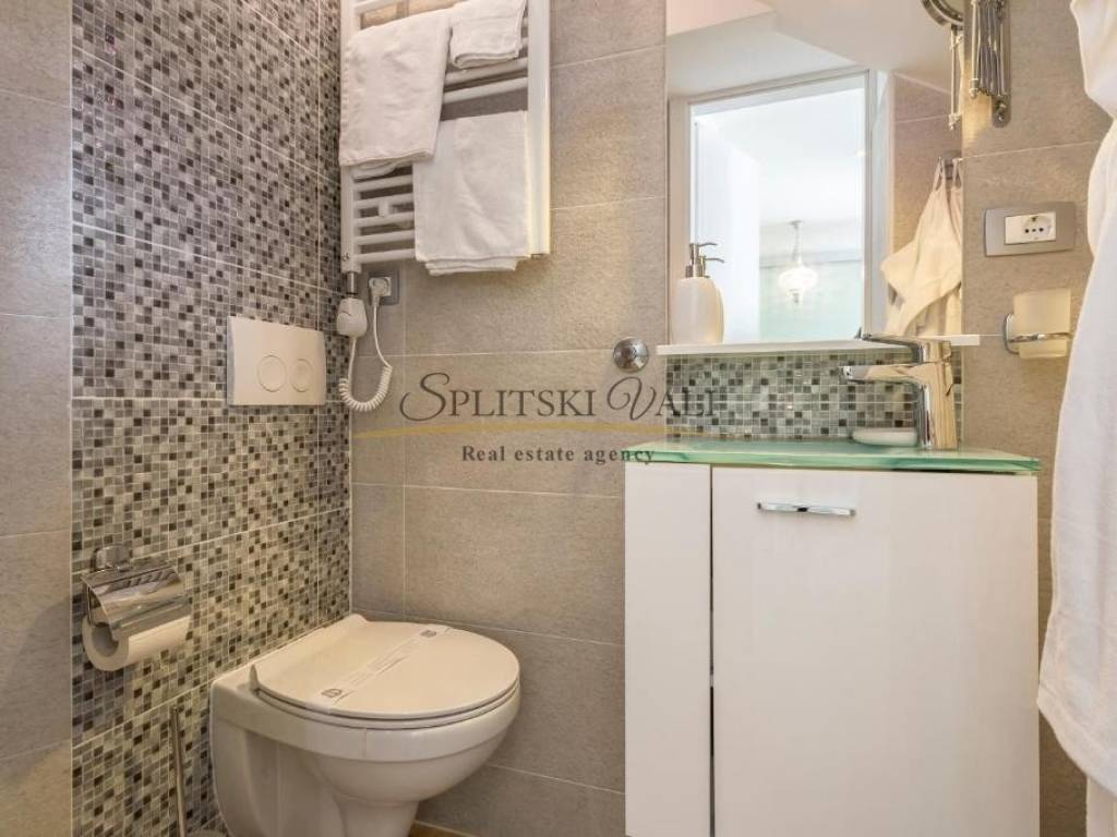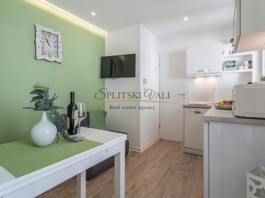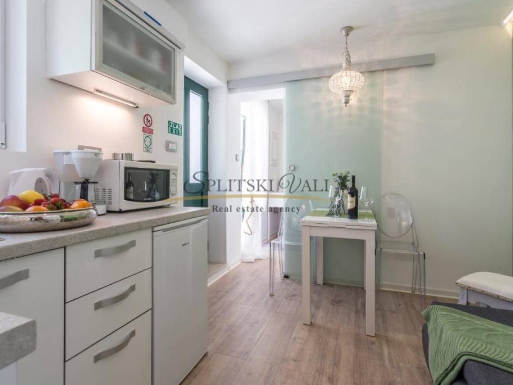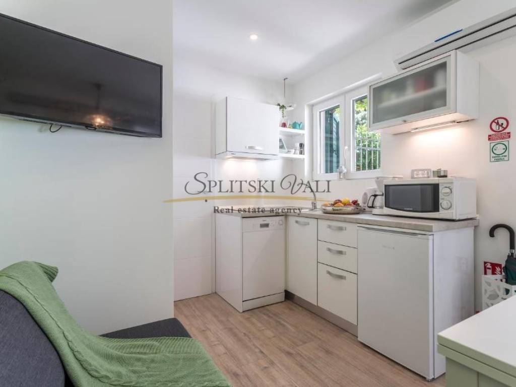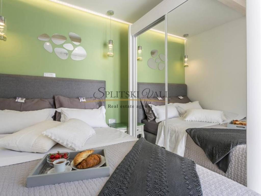 Veći apartman površine 41m2 sastoji se od kuhinje s blagovaonom, dnevnog boravka, spavaće sobe, kupatila + ostava (4m2) Manji apartman površine cca 20m2 sastoji se od kuhinje s dnevnim boravkom, spavaće sobe i kupatila. Apartmani su kompletno renovirani i odlični za turistički najam. Mogućnost prodaje svakog apartmana zasebno.