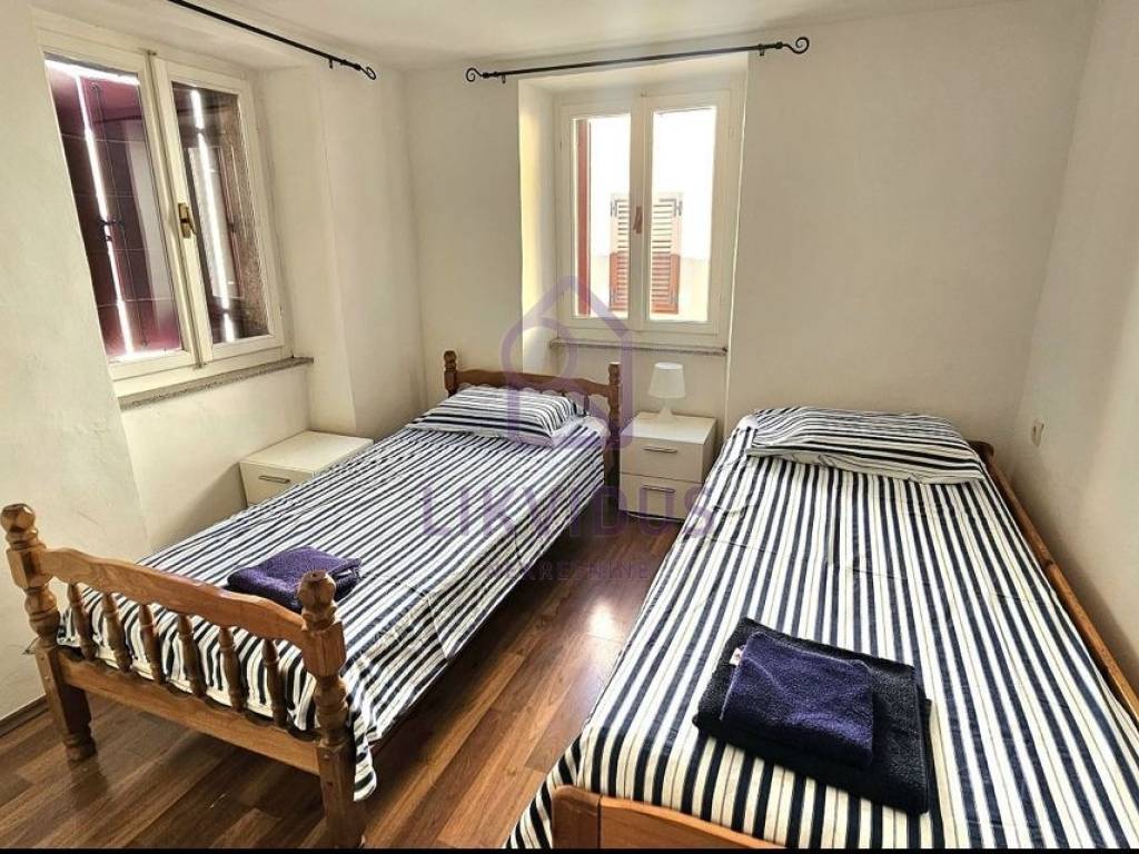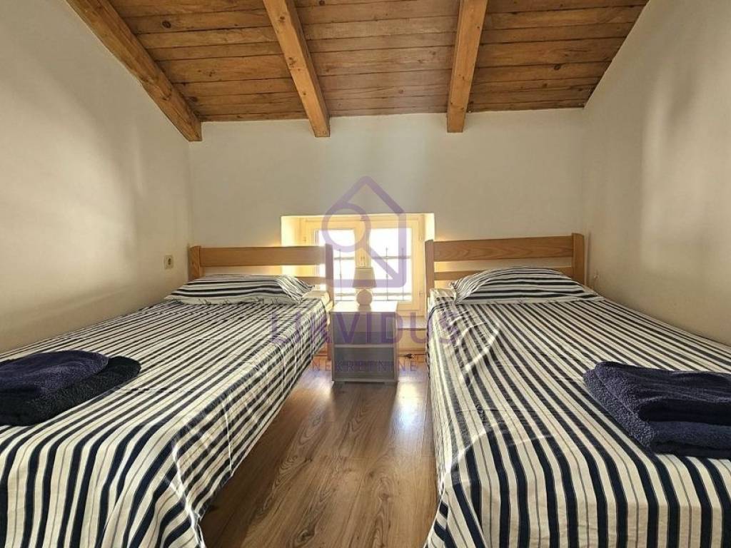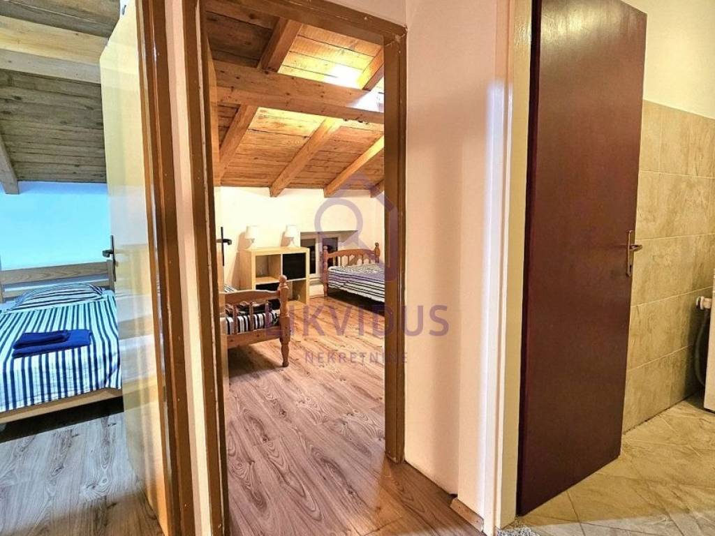 U prizemlju se nalazi studio apartman za troje, sa kuhinjom i kupatilom, te još jedan manji studio za dvije osobe. Na prvom katu se nalazi velika kuhinja sa stolom sa 13 stolica i prostrana terasa. Na drugom katu je jedna velika soba za 4 osobe i jedna prostrana za 2 osobe. Na trećem katu je kupatilo i jedna soba za dvoje i jedna kuhinja.