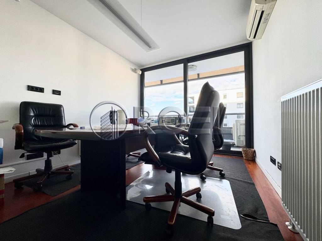It is currently used as an office. It consists of one large room partitioned with glass, otherwise a space intended for a living room with a kitchen, two bedrooms, a utility room, a bathroom with a toilet and an additional toilet. The floors are covered with parquet and ceramics, and the heating is gas central heating.