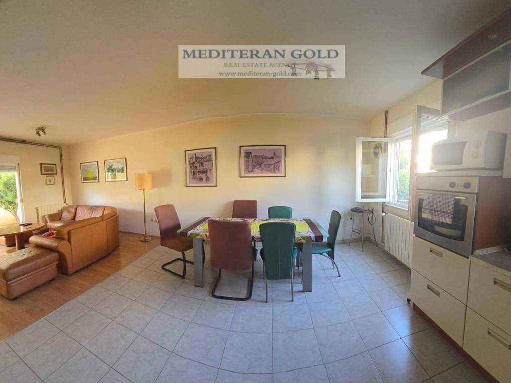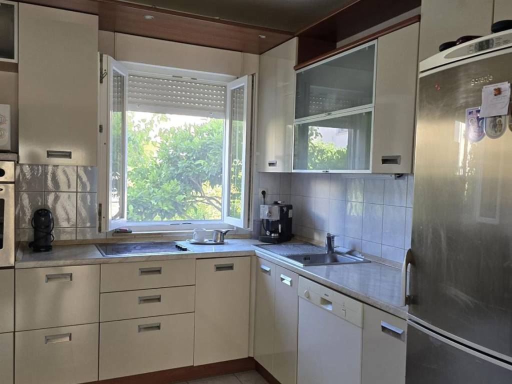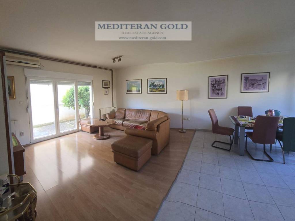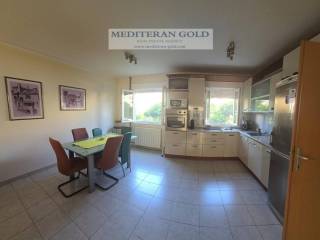 Kastel Luksic, house for sale, on two floors there, a three-bedroom apartment of 170m2, with its own entrance, garage of 18m2, outdoor parking space, garden of 90m2 and storage room. It consists of a ground floor: a large living room with a kitchen and a terrace and a small bathroom, internal stairs, on the first floor there are three large bedrooms with terraces and a large bathroom. Built-in central heating, facing east and west, 500 m from the sea. Ideal for living or as an investment.