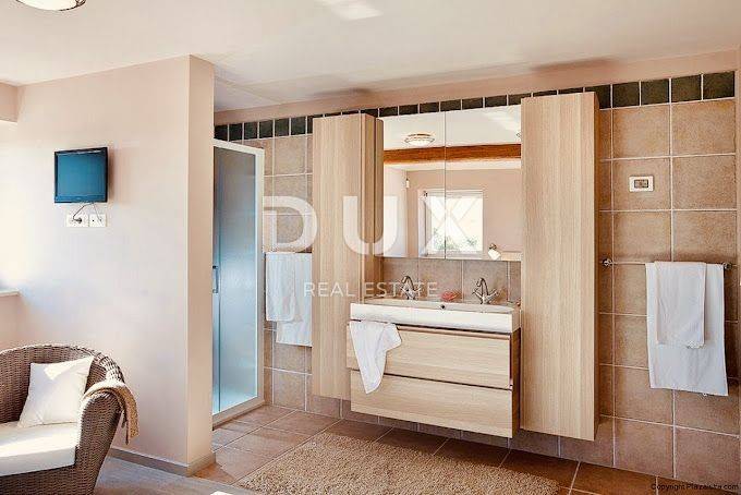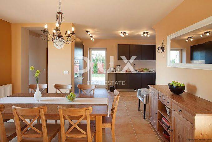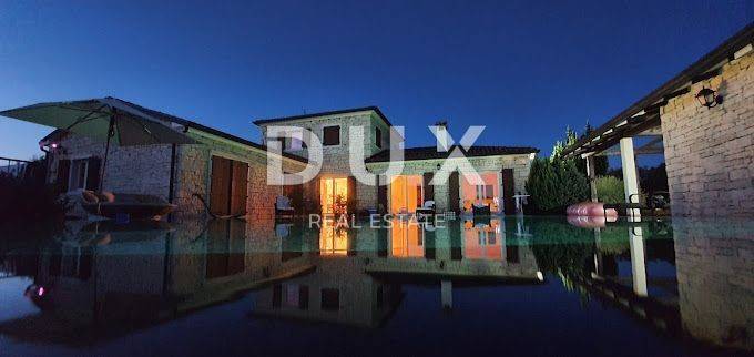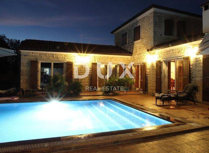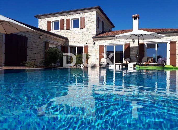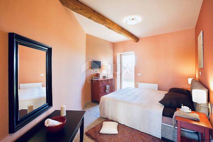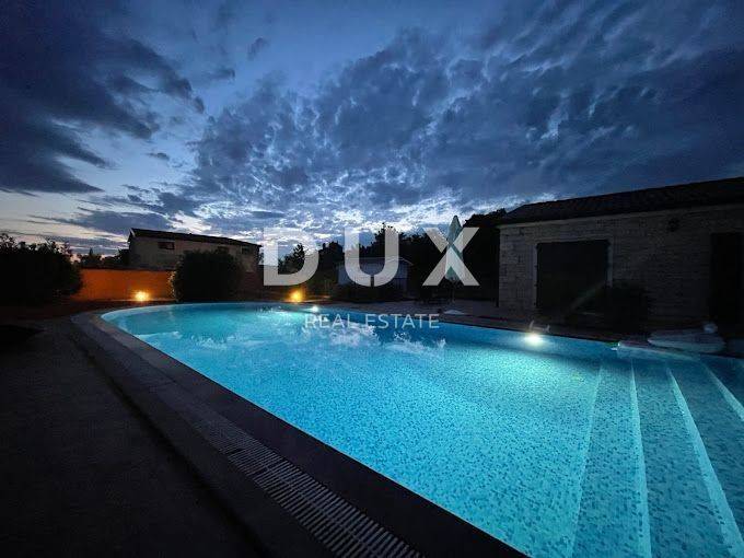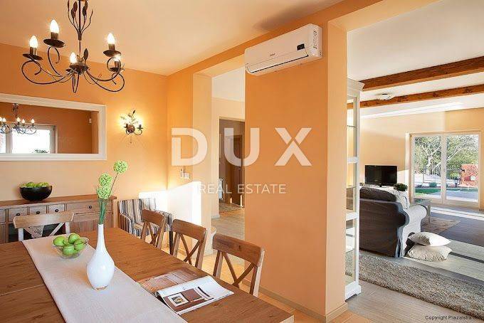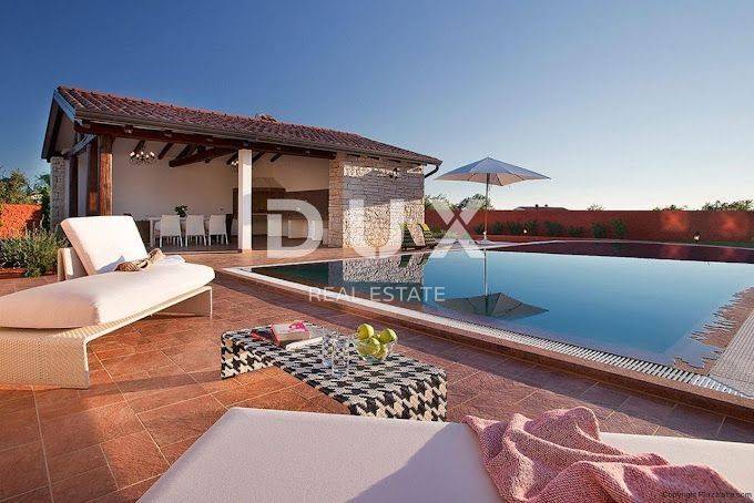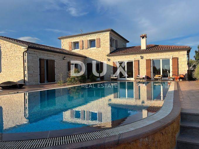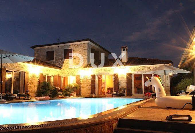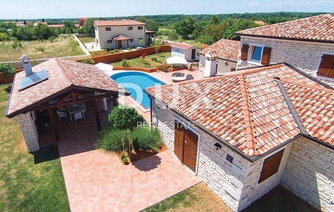 The Renaissance town of Svetvinčenat is one of the Istrian gems with a rich tourist offer and numerous events that take place in the exceptionally attractive historical areas of this town. Savičenat is adorned with the Renaissance square "Placa" with the Morosini-Grimani castle, the symbol of the town itself and one of the most important fortresses of the Venetian army of that time in Istria. An important part of the cultural heritage of Svetvinčenat are the preserved and extremely valued remains of wall frescoes that are located in the church of St. Vincent near the town cemetery and in the church of St. Catherine. This special town with a rich tradition, its interesting and diverse programs, the most prominent of which are the Medieval Festival, the Cheese Festival and the Festival of Dance and Non-Verbal Theater, attracts numerous visitors every year. This luxurious villa is located in a quiet small town near Svetvinčenat, almost secluded since it is surrounded by only two holiday homes and nature and greenery. It is located in the immediate vicinity of the tourist centers of Istria. The villa is located on a plot of 1702m2, of which 1367m2 belongs to the garden, while the rest of the land is occupied by the villa, swimming pool, auxiliary building with bathroom and enough space for parking. The villa itself consists of an open space area where there is a kitchen, dining room and living room with fireplace and access to the terrace, sundeck, swimming pool and summer kitchen. On the ground floor of the house there are two bedrooms, a guest toilet and two bathrooms, while on the first floor there is another bedroom and bathroom. The house is heated via underfloor heating, while cooling is provided by five air conditioners. This villa is in a successful tourist rental and as such, it is a secure return on investment, while due to the luxury and privacy it offers, it could be someone's dream home or a dream vacation oasis.
